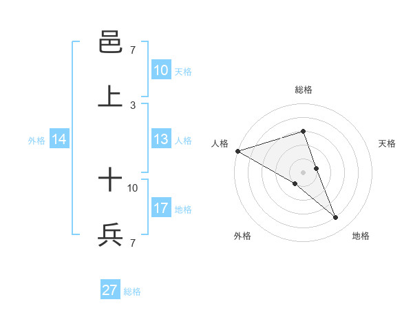 邑上 十兵さんの地格は17画の4点!
