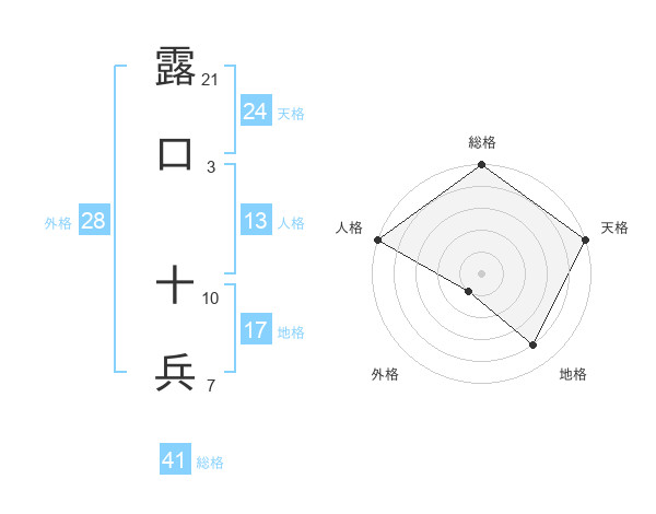 露口 十兵さんの天格は24画の5点!
