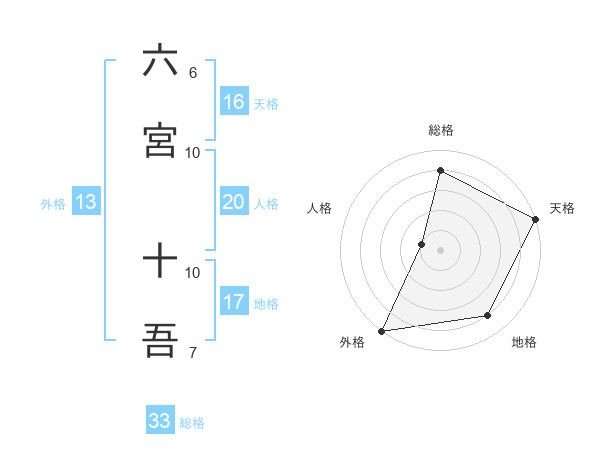 六宮 十吾さんの総格は33画の4点!