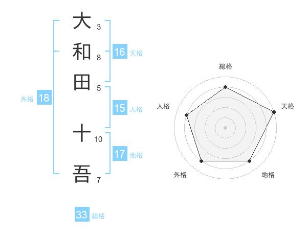 大和田 十吾さんを姓名の画数から五運を鑑定