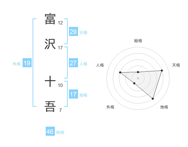 富沢 十吾さんを姓名の画数から五運を鑑定