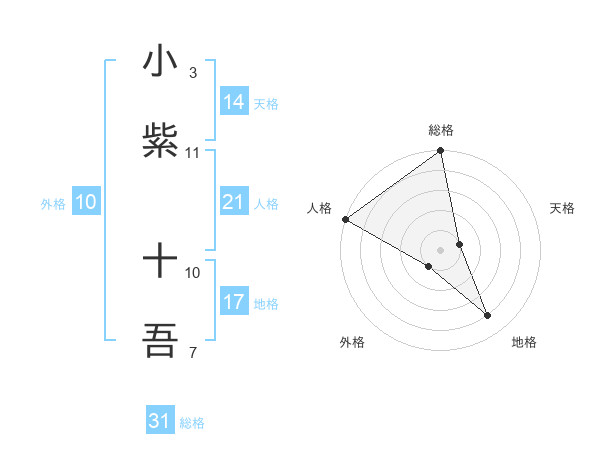 小紫 十吾さんを姓名の画数から五運を鑑定