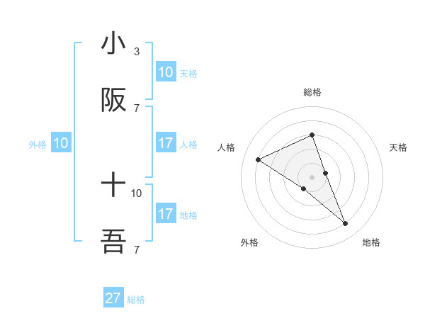 小阪 十吾さんの総格は27画の3点!