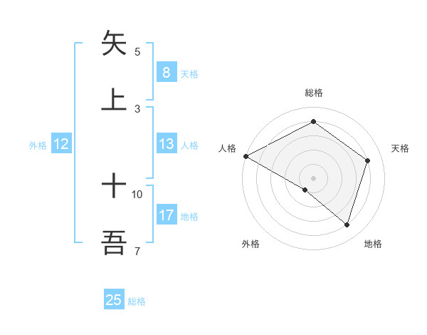 矢上 十吾さんの天格は8画の4点!