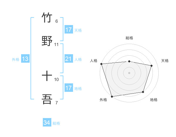 竹野 十吾さんの天格は17画の4点!