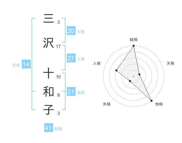 三沢 十和子さんを姓名の画数から五運を鑑定