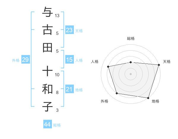 与古田 十和子さんを姓名の画数から五運を鑑定