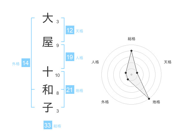 大屋 十和子さんを姓名の画数から五運を鑑定