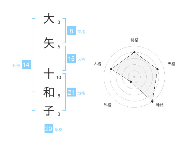 大矢 十和子さんの人格は15画の4点!