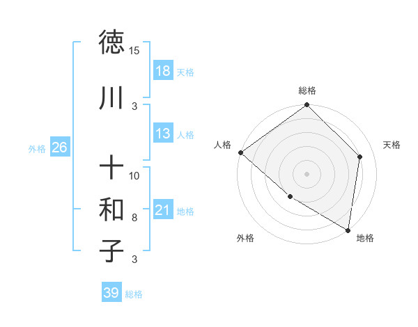 徳川 十和子さんを姓名の画数から五運を鑑定