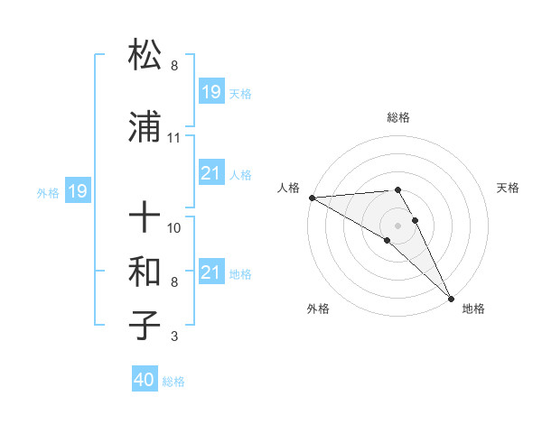 松浦 十和子さんを姓名の画数から五運を鑑定
