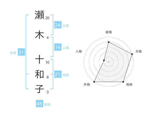 瀬木 十和子さんの総格は45画の4点!
