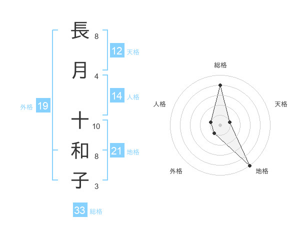 本サイトの鑑定結果の正当性は保証しません。鑑定結果は参考程度にお読みください。実際の名づけにご利用される場合は、姓名判断についてご自身でよくお調べください。