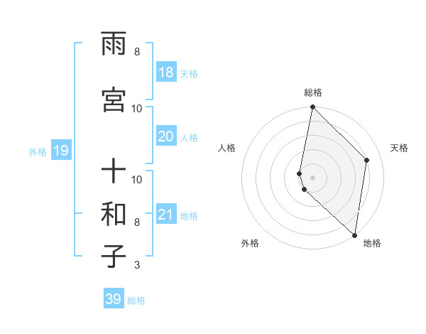 雨宮 十和子さんを姓名の画数から五運を鑑定