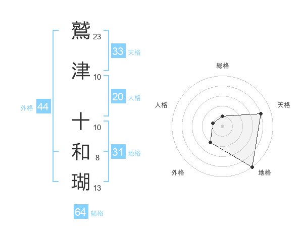 鷲津 十和瑚さんを姓名の画数から五運を鑑定