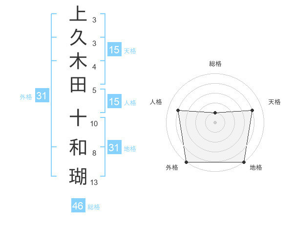 上久木田 十和瑚さんの外格は31画の5点!