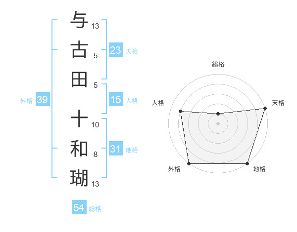 与古田 十和瑚さんを姓名の画数から五運を鑑定