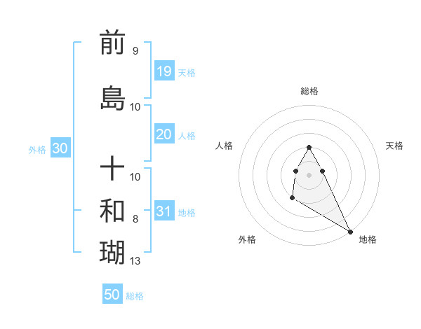 前島 十和瑚さんの総格は50画の2点!
