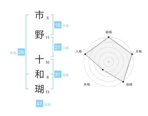 市野 十和瑚さんの地格は31画の5点!