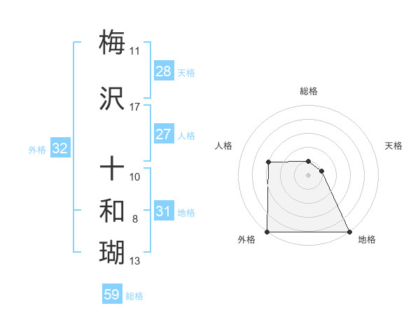 梅沢 十和瑚さんを姓名の画数から五運を鑑定