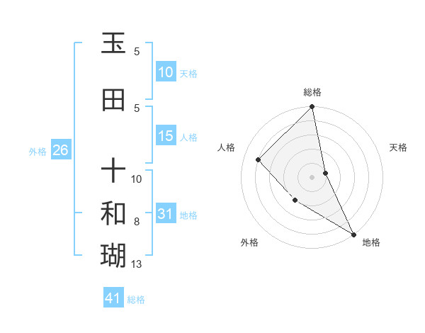 玉田 十和瑚さんを姓名の画数から五運を鑑定