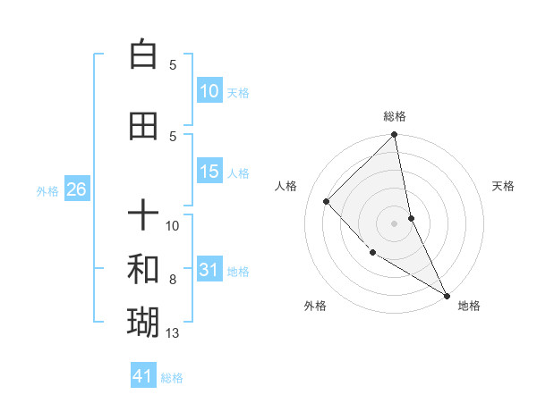 白田 十和瑚さんの地格は31画の5点!
