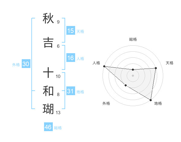 秋吉 十和瑚さんを姓名の画数から五運を鑑定