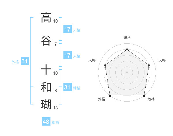 高谷 十和瑚さんを姓名の画数から五運を鑑定