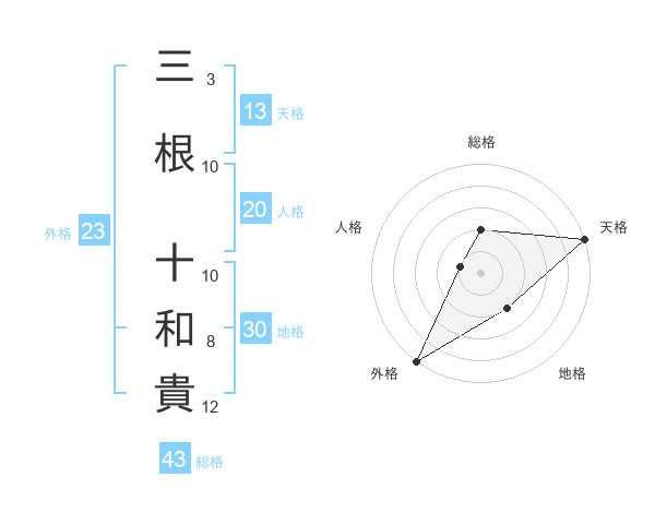 三根 十和貴さんを姓名の画数から五運を鑑定