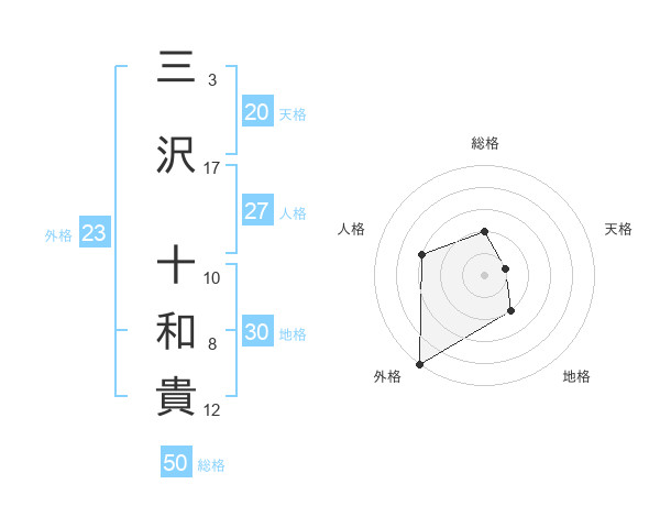 三沢 十和貴さんの外格は23画の5点!