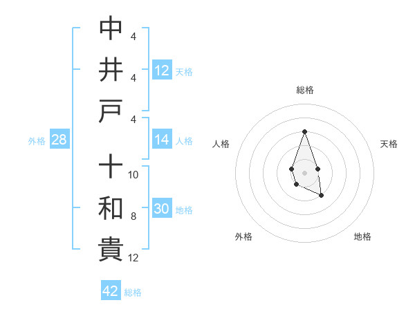 中井戸 十和貴さんの総格は42画の3点