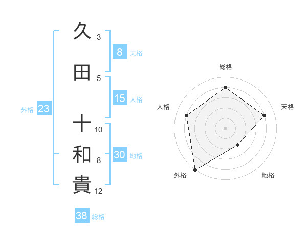 久田 十和貴さんの総格は38画の4点!