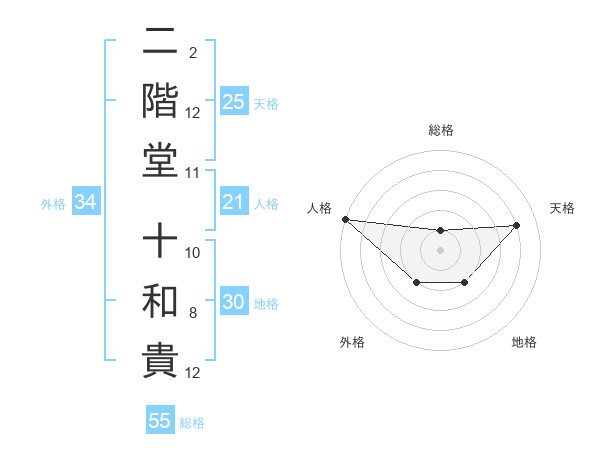 二階堂 十和貴さんの総格は55画の1点!