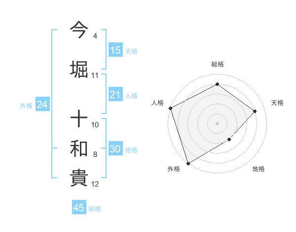 今堀 十和貴さんを姓名の画数から五運を鑑定