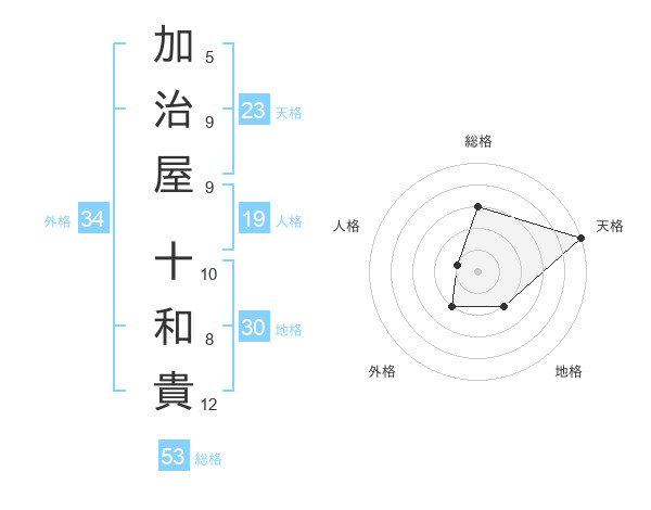 加治屋 十和貴さんの天格は23画の5点!