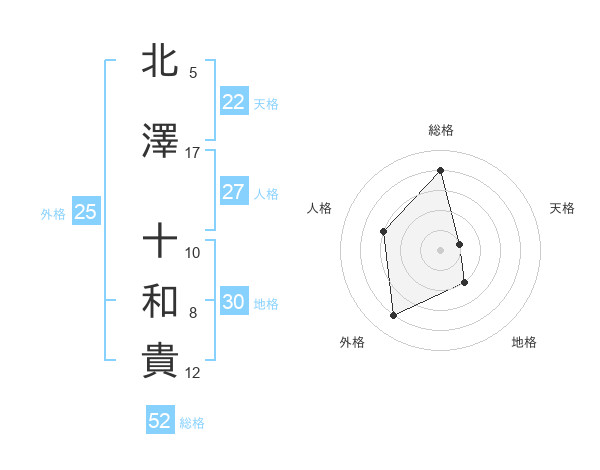 北澤 十和貴さんを姓名の画数から五運を鑑定