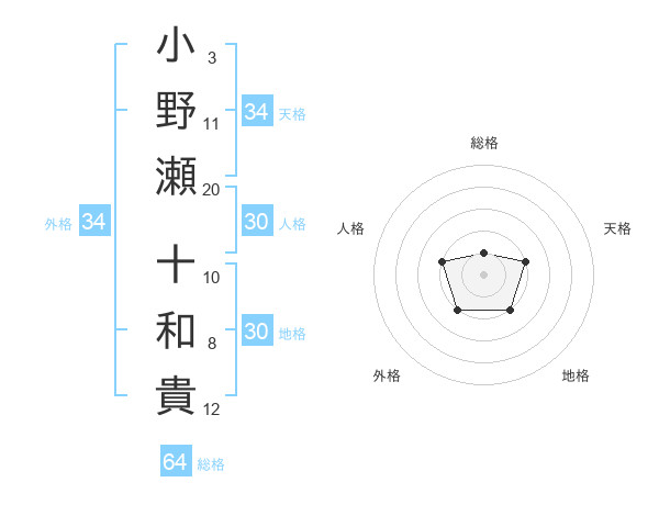 小野瀬 十和貴さんを姓名の画数から五運を鑑定