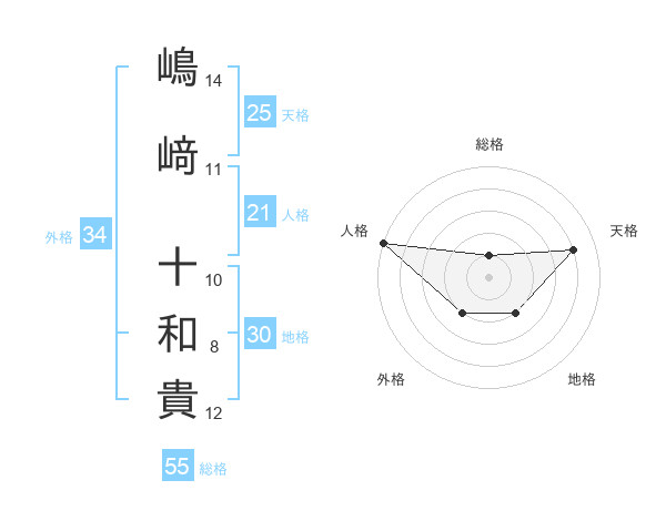 嶋﨑 十和貴さんを姓名の画数から五運を鑑定