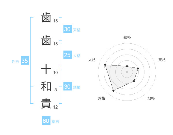 歯歯 十和貴さんの外格は35画の4点!