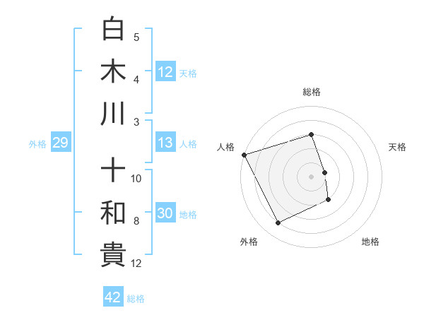 白木川 十和貴さんを姓名の画数から五運を鑑定