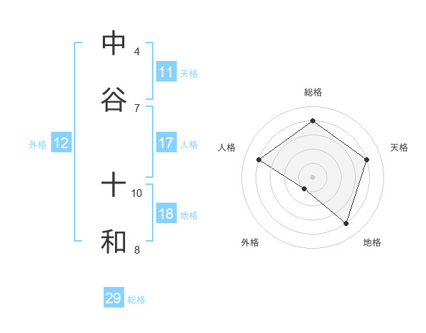 中谷 十和さんの総格は29画の4点!