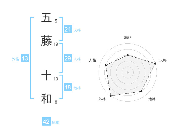 五藤 十和さんの天格は24画の5点!