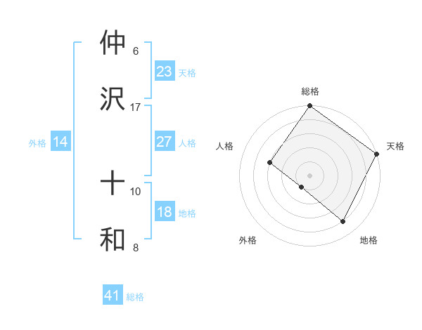 仲沢 十和さんの総格は41画の5点!