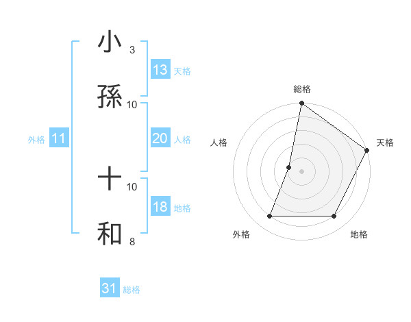 小孫 十和さんの天格は13画の5点!