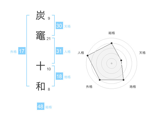 炭竈 十和さんを姓名の画数から五運を鑑定