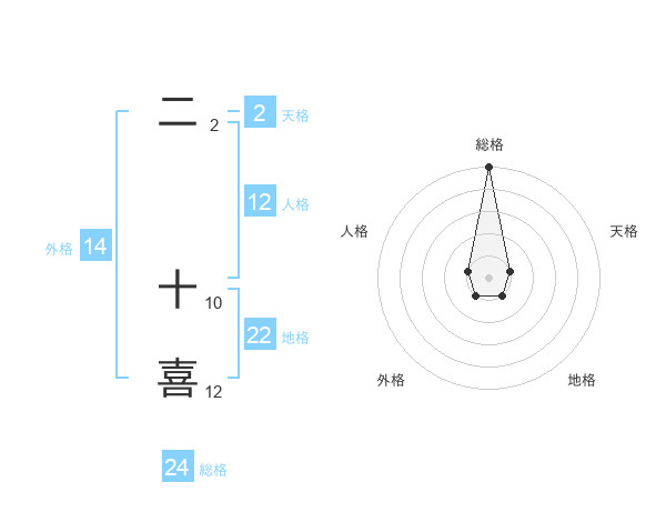 二 十喜さんの総格は24画の5点!