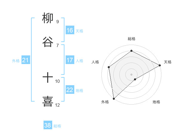 柳谷 十喜さんの天格は16画の5点!
