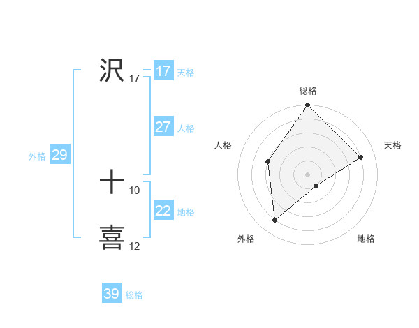 沢 十喜さんの総格は39画の5点!