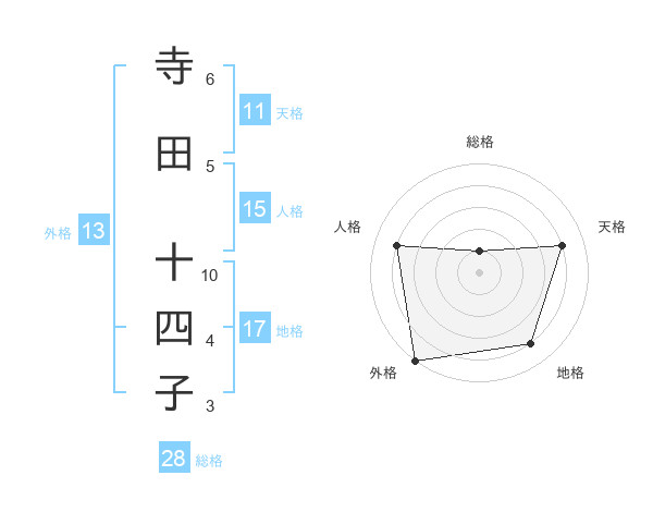 寺田 十四子さんの外格は13画の5点!