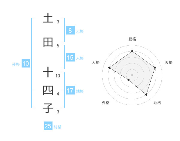 土田 十四子さんの総格は25画の4点!